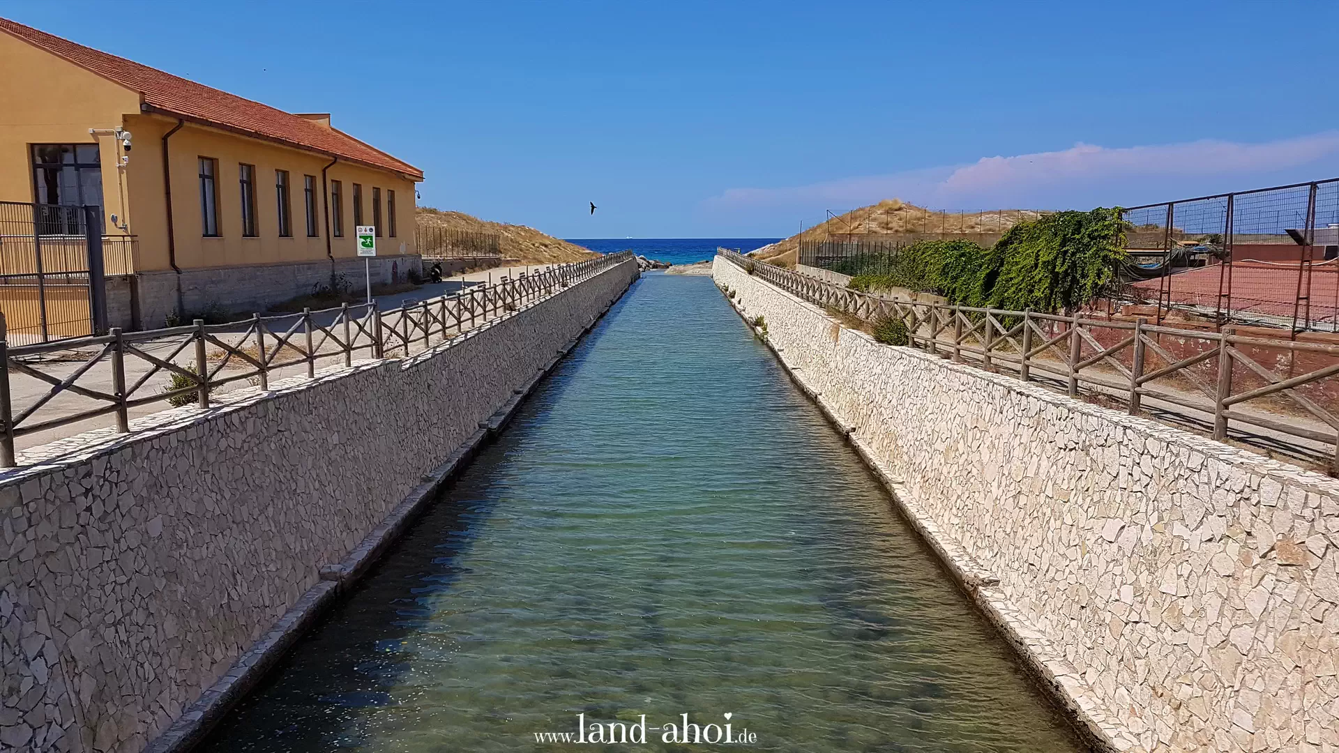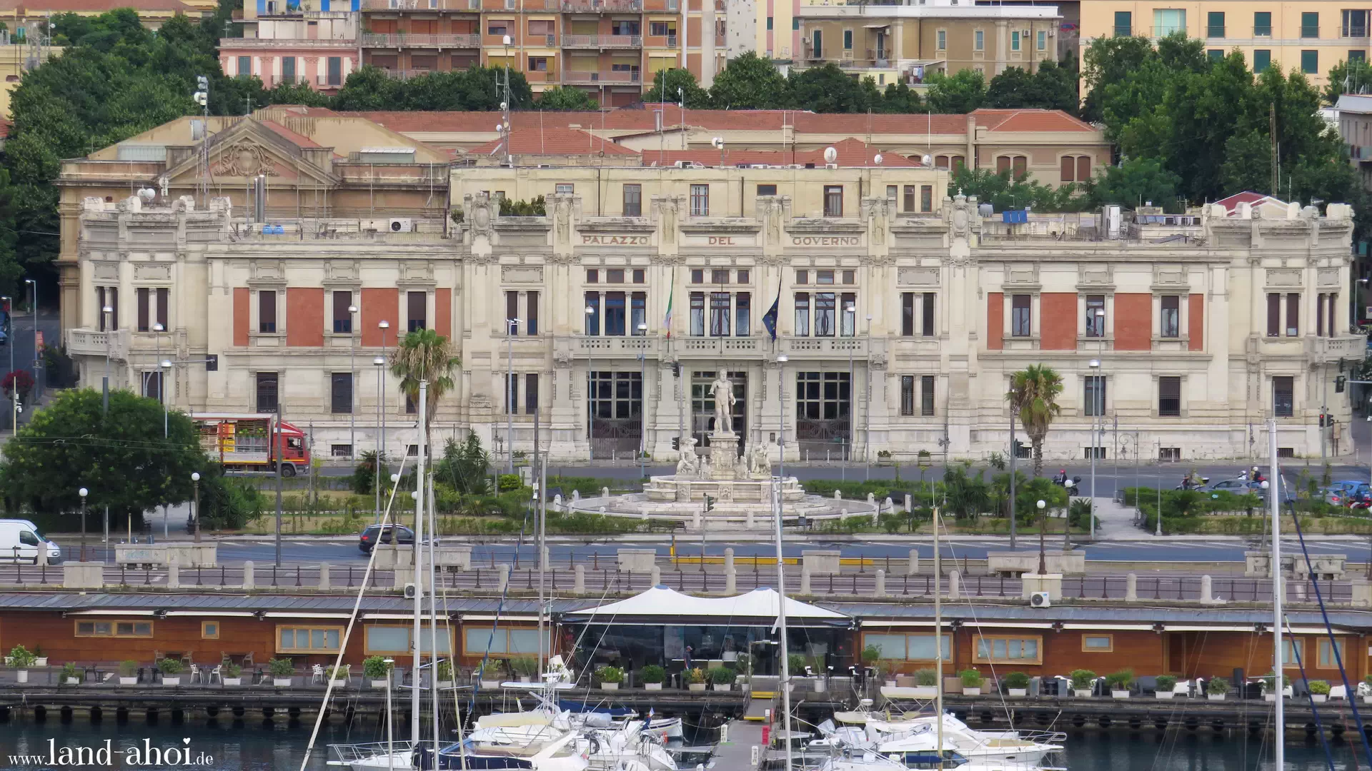 An der Hafeneinfahrt sticht der mächtige Campana-Turm mit der auf ihm thronenden Schutzpatronin der Stadt, der Madonna della Lettera ins Auge. Im Jahre 1934 eingeweiht, erreicht die mächtige Säule mit der goldfarbenen Figur eine Höhe von 60 Meter. Die Kugel selbst besitzt einen Durchmesser von 2,60 Meter und der Schriftzug “Vos et ipsam civitatem benedicimus” am Fuße der Säule bedeutet “Ich segne euch und eure Stadt”. Das Bauwerk befindet sich an der Spitze der sichelförmigen Halbinsel, die heute zu großen Teilen von der italienischen Marine genutzt wird und leider nur zu besonderen Anlässen zugänglich ist. Hier entstand bereits 1546 die Festung San Salvatore, von der unter anderem der kräftige Wall erhalten blieb.