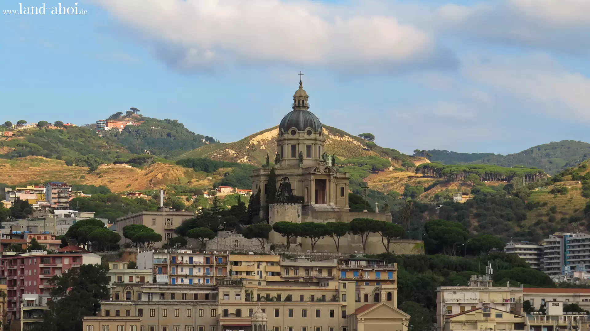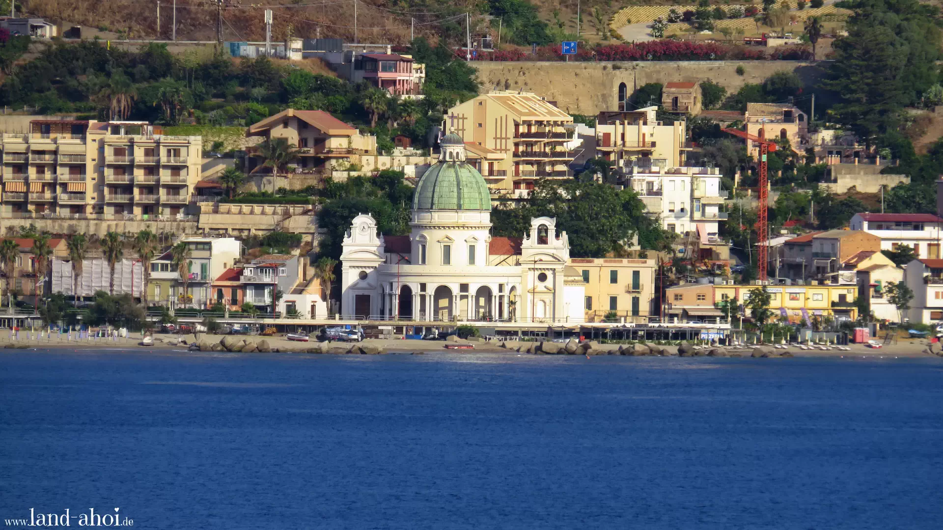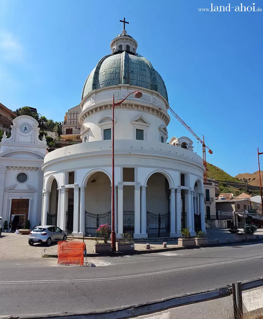 Erhaben und unübersehbar thront die Kirche Sacrario Cristo Re über Messina und ist damit sehr gut vom Kreuzfahrtschiff zu erblicken. Der Kuppelbau und sogenannte Christkönigstempel wurde 1937 auf den Resten einer alten Burganlage von 1191 errichtet, und ist den Opfern des Ersten und Zweiten Weltkrieges gewidmet. Dazu wurden ihre Namen auf steinernen Platten verewigt und zum Gedenken ertönt täglich bei Sonnenuntergang die wuchtige Glocke.