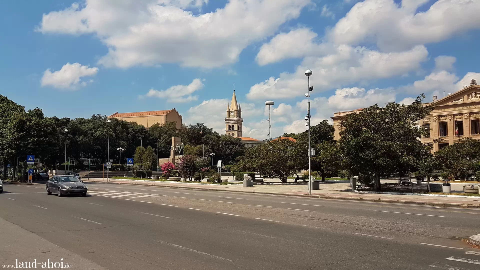 Unweit vom Kreuzfahrtterminal entfernt, trifft man auf ein interessantes historisches Bauwerk, welches im Laufe der Zeit durch Erdbeben, Brände und Kriege mehrmals und teilweise auch sehr stark beschädigt wurde. Die Kathedrale von Messina (Duomo di Messina) wurde im Jahre 1197 erstmals eingeweiht und erhielt 1933 einen separaten, freistehenden Glockenturm. Dieser ist 48 Meter hoch und besitzt ein umfangreiches, mechanisches Uhrwerk. Die Südseite des Campanile zeigt das aktuelle Datum, die Mondphasen und die Planetenstellungen zu den Tierkreisen an.
