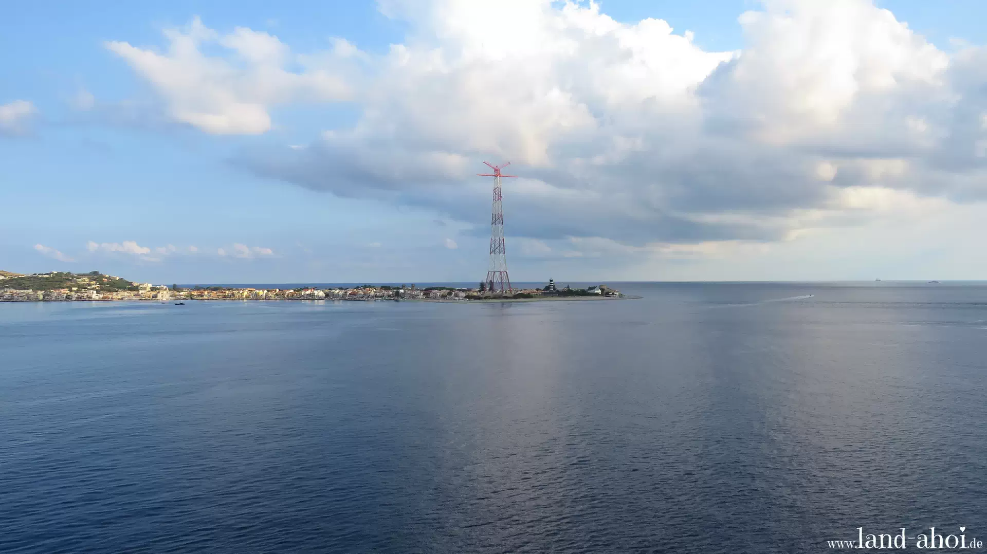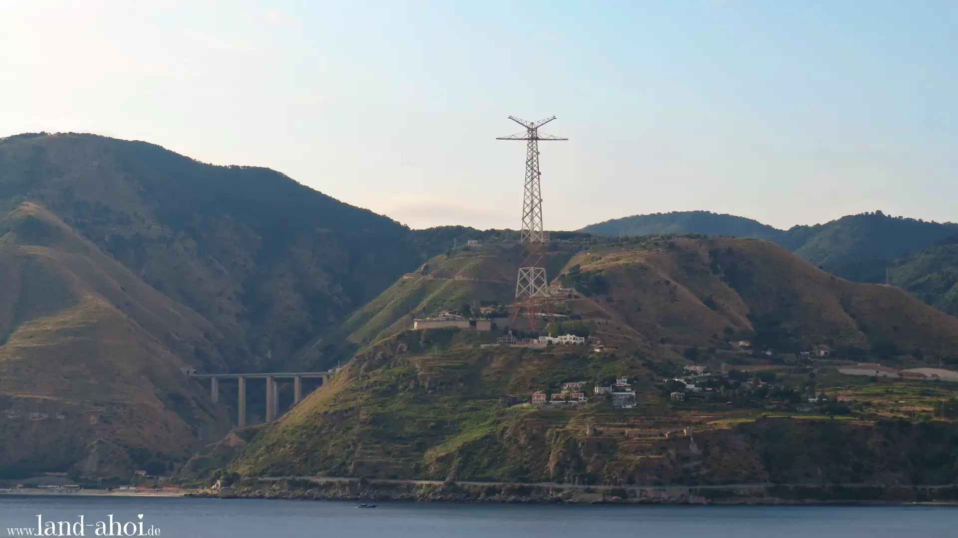 Die nordöstliche Spitze Siziliens ist etwa 15 Kilometer von den Liegeplätzen entfernt und kann beispielsweise mit einem Mietwagen in rund 30 Minuten erreicht werden. Dort breitet sich das Örtchen Torre Faro aus, an dem sich ein gewaltiger Strommast befindet. Der sogenannte Pilone di Torre Faro ist 232 Meter hoch und war bis 1994 über eine Hochspannungsleitung mit einem identischen Mast auf dem italienischen Festland verbunden. Heute stehen die beiden Masten unter Denkmalschutz und werden als Antennenträger verwendet.